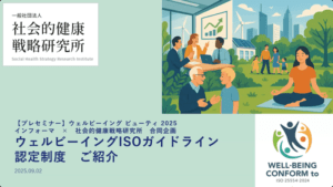 | 2025年9月3日開催 ウェビナーアーカイブ | 2025年9月3日開催 ウェビナーアーカイブ | ウェルビーイングISOガイドライン認定 ウェブサイト(社会的健康戦略研究所) |